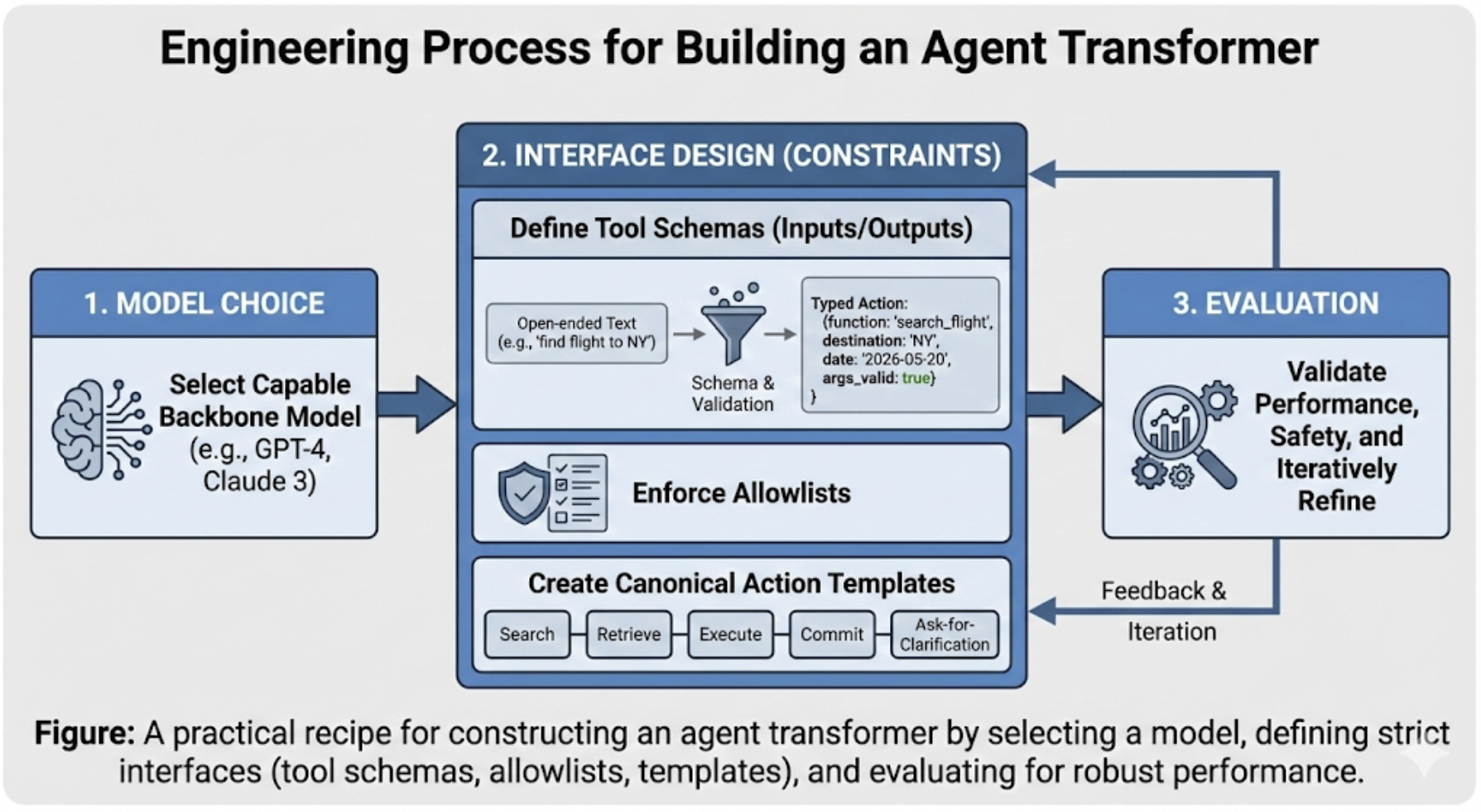 - 采用 Agent Transformer 抽象:明确分离策略、记忆、工具、验证器、环境接口